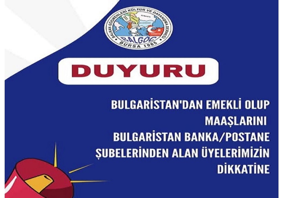"Bulgaristan hükümetinin aldığı yeni karar doğrultusunda; Bulgaristan'dan emekli olup maaşlarını Bulgaristan banka veya postane şubelerinden almakta olan vatandaşlarımızın 31 Aralık 2025 tarihine kadar Bulgaristan Cumhuriyeti Sosyal Güvenlik Kurumu (NOİ)’na "Yaşam Beyannamesi" vermeleri gerekmektedir.