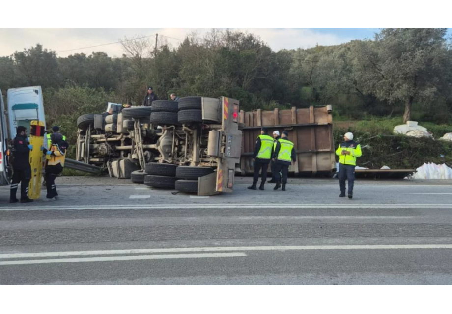 Edinilen bilgiye göre, H.N. idaresindeki 16 NB 924 plakalı cam elyaf yüklü kamyon, sürücüsünün direksiyon hakimiyetini kaybetmesi sonucu kontrolden çıktı.