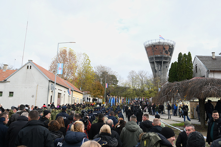 Vukovar'daki katliamın sembolü haline gelen kent hastanesi önünde toplanan kalabalık, anma törenlerinin yapıldığı alana gelerek geleneksel olarak düzenlenen anma yürüyüşüne katıldı.