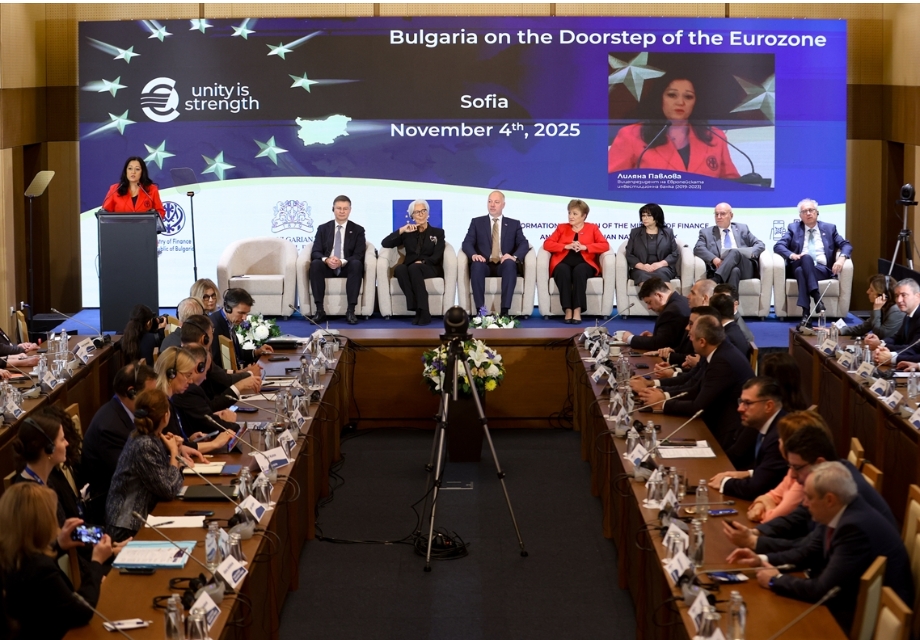 Lagarde, Uluslararası Para Fonu (IMF) Başkanı Kristalina Georgieva, Bulgaristan Başbakanı Rosen Jelyazkov ve Maliye Bakanı Temenujka Petkova ile birlikte başkent Sofya’nın Boyana Hükümet Köşkü'nde düzenlenen “Avro Bölgesi Eşiğindeki Bulgaristan” konulu konferansa katıldı.
