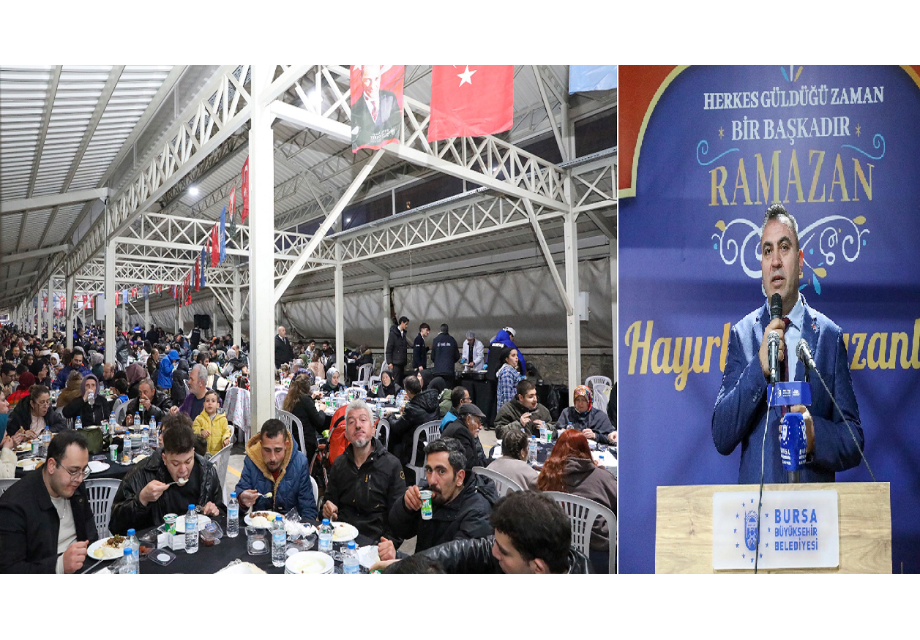 Ramazan ayı boyunca 4 farklı noktada oluşturduğu sabit noktalarda her gün binlerce Bursalıyı iftar sofralarında misafir eden, 14 farklı bölgede ise iftara yolda yakalananlara iftariyelik dağıtan Bursa Büyükşehir Belediyesi, 17 ilçede düzenlediği iftar programlarına ise Yıldırım’la devam etti.