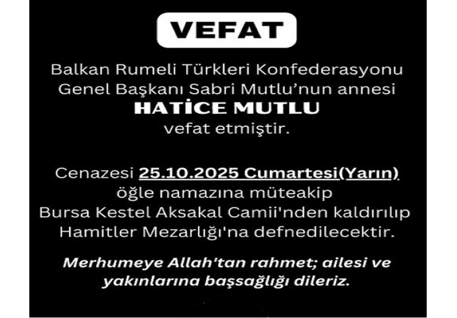 Sabri Mutlu’nun annesi Hatice Mutlu vefat etmiştir.
